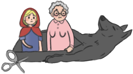 "Ah, how frightened I have been. How dark it was inside the wolf."