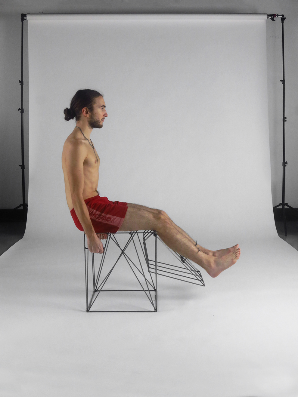 Muscure est un tabouret témoin de la part d'absurdité présente dans notre pratique du sport. Il confronte instrument de torture et sport en regroupant l'esthétique du premier et l'usage du second.